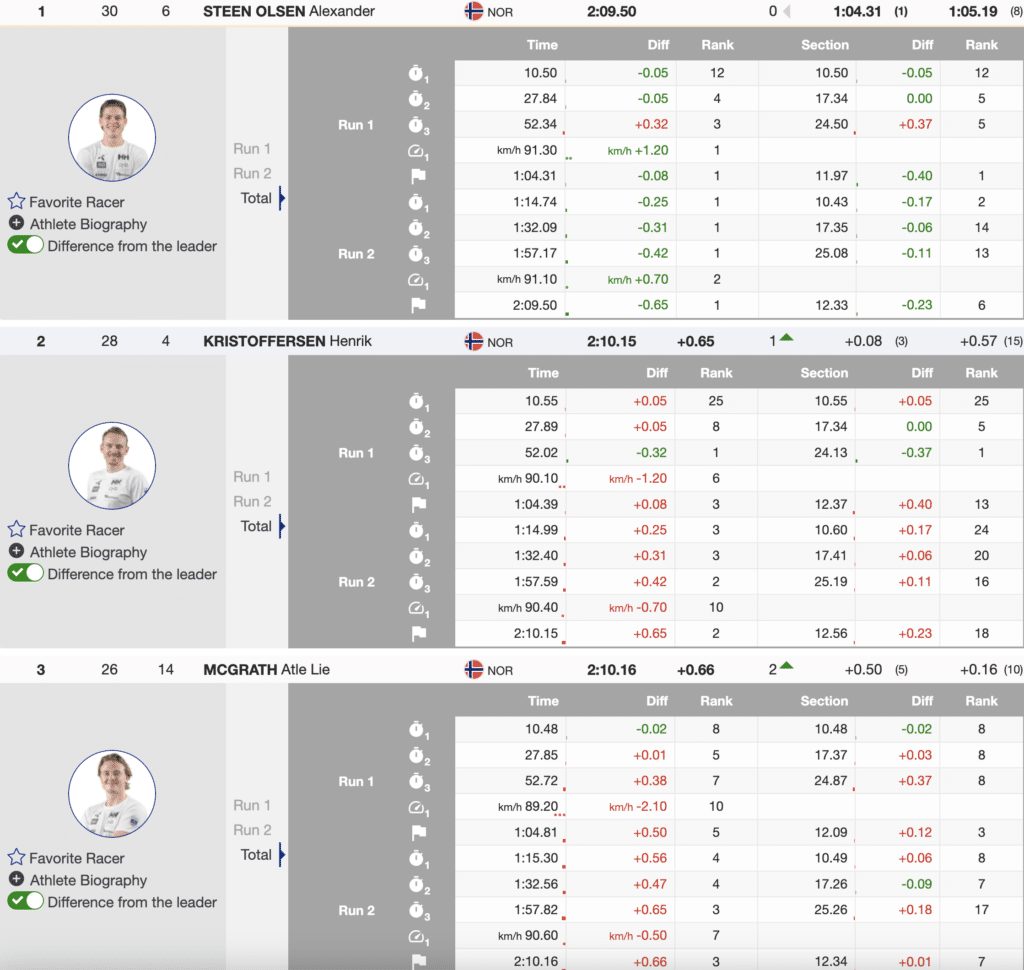 At just 23 and 24 years old, respectively, Steen Olsen and Lie McGrath highlight Norway’s emerging talent, underscoring the nation’s continuing dominance even as Pinheiro Braathen now competes for Brazil.