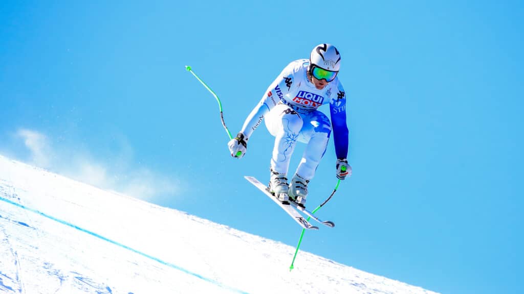 As predicted, the weather was perfect for the men’s downhill in Courchevel, France. With a week of blue skies, the L’Eclipse race slope was ideal. The course was fast, the jumps big and required the execution of all types of downhill turns. The course went in and out of direct sunlight. It was hard to see the racing surface and all the small variabilities when it was in the shade.