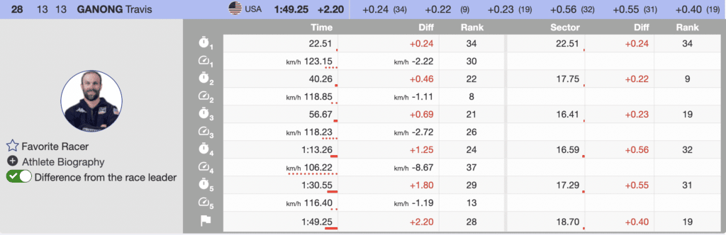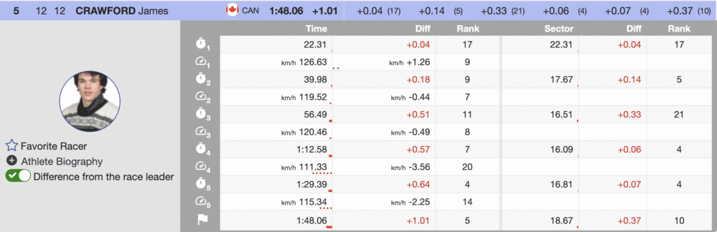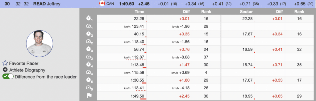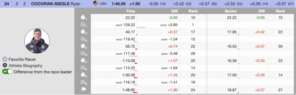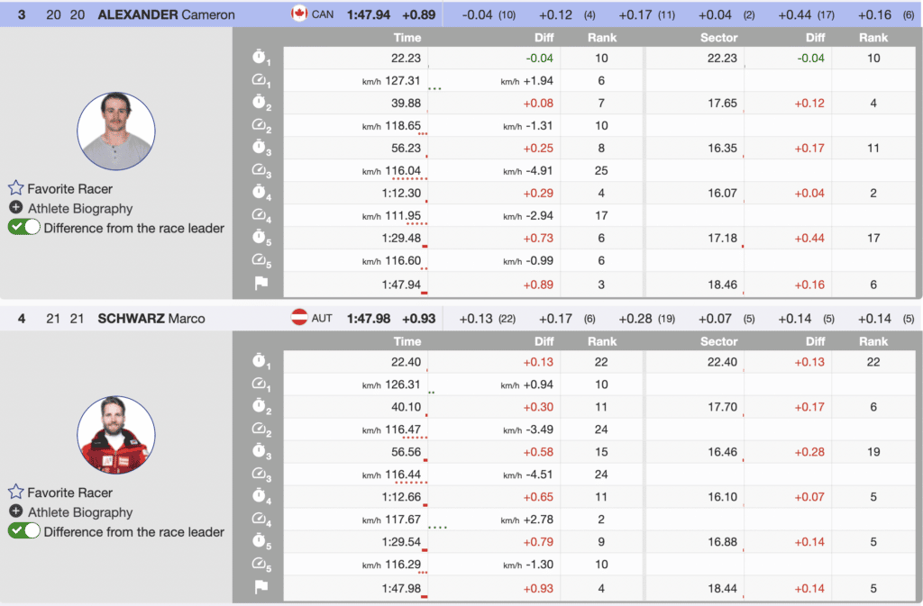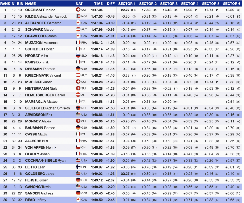 Top 30 men’s downhill results, and analysis of the fastest four and North Americans