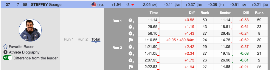 Steffey explained, “Last year, I didn’t race at all because I was injured, but this year, it has been a little bit freer with the skiing, with better trust on the first run. So, the skiing’s been there for me; it’s just a matter of putting it together in the race.”