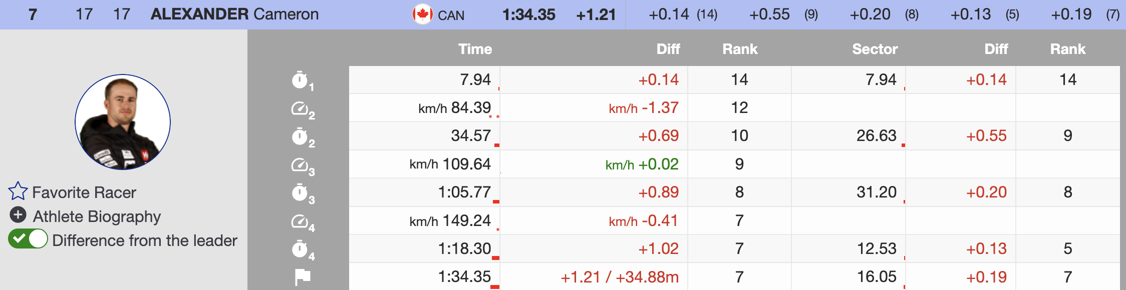 - 7th — 🇨🇦 Cameron Alexander — 1997 — +1.21 — Atomic