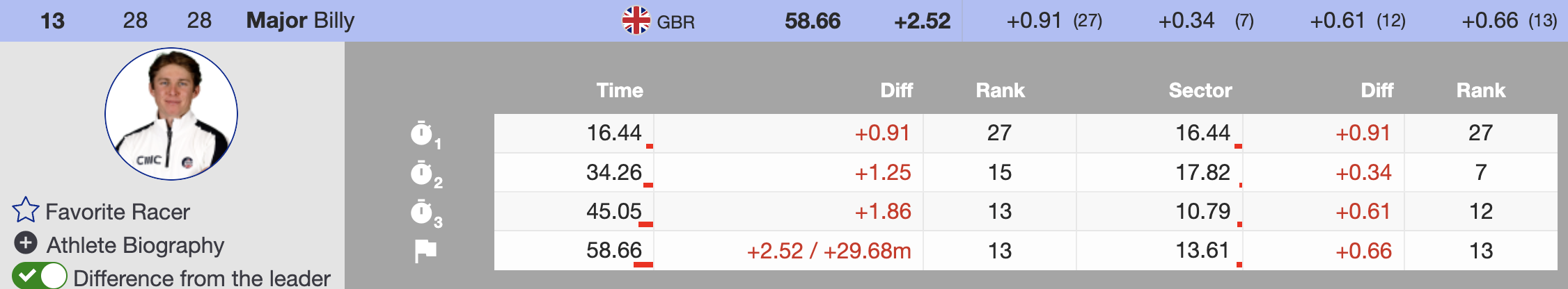 - 🇬🇧 Billy Major (GBR, 1991) — +2.52