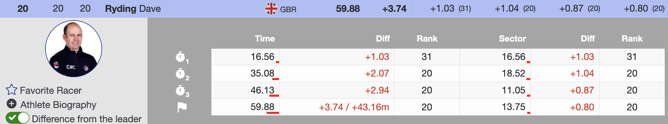 - 🇬🇧 Dave Ryding (GBR, 1986) — +3.74