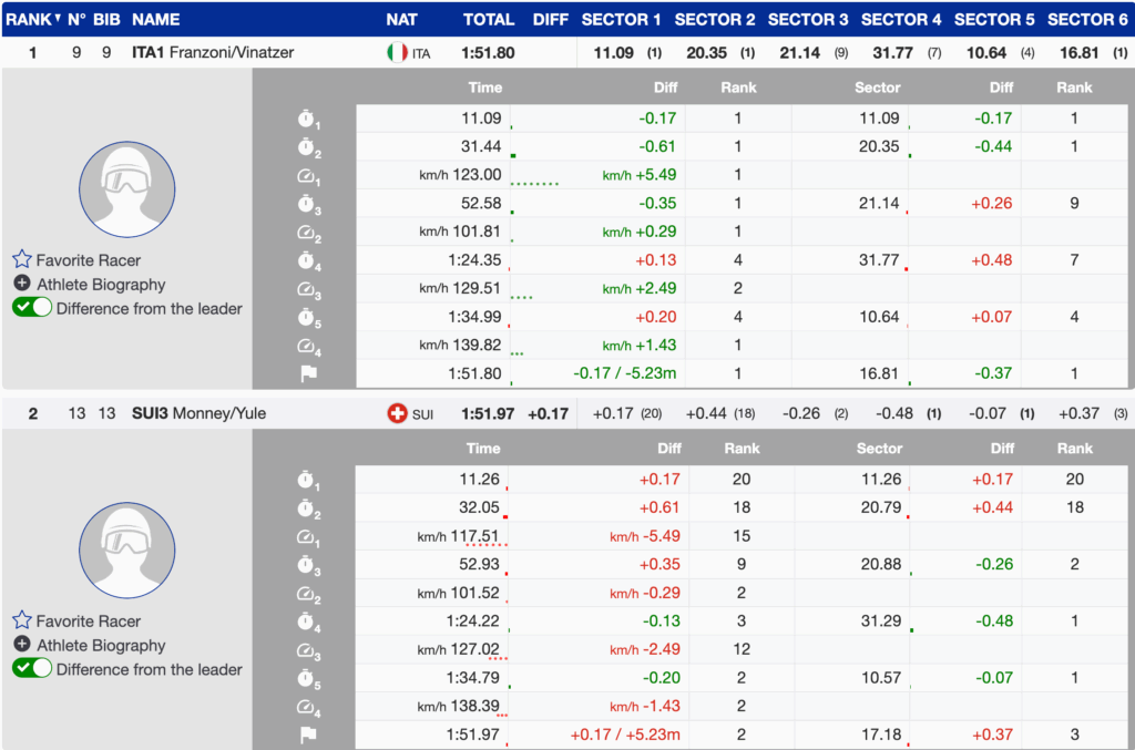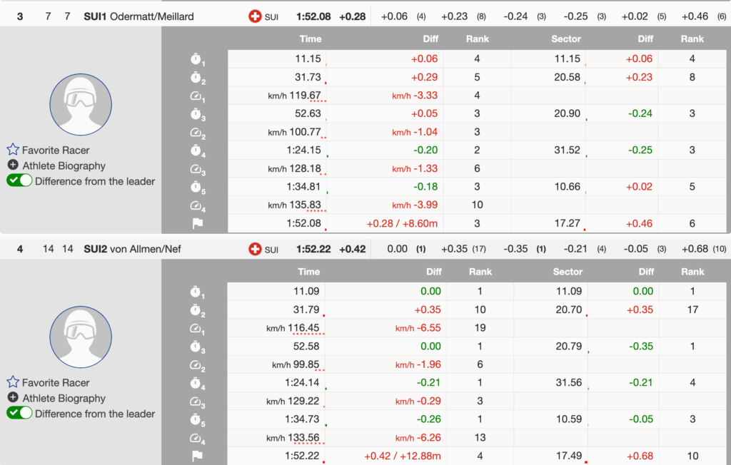 - 4th: SUI2 🇨🇭Franjo von Allmen (SUI) — +0.42
