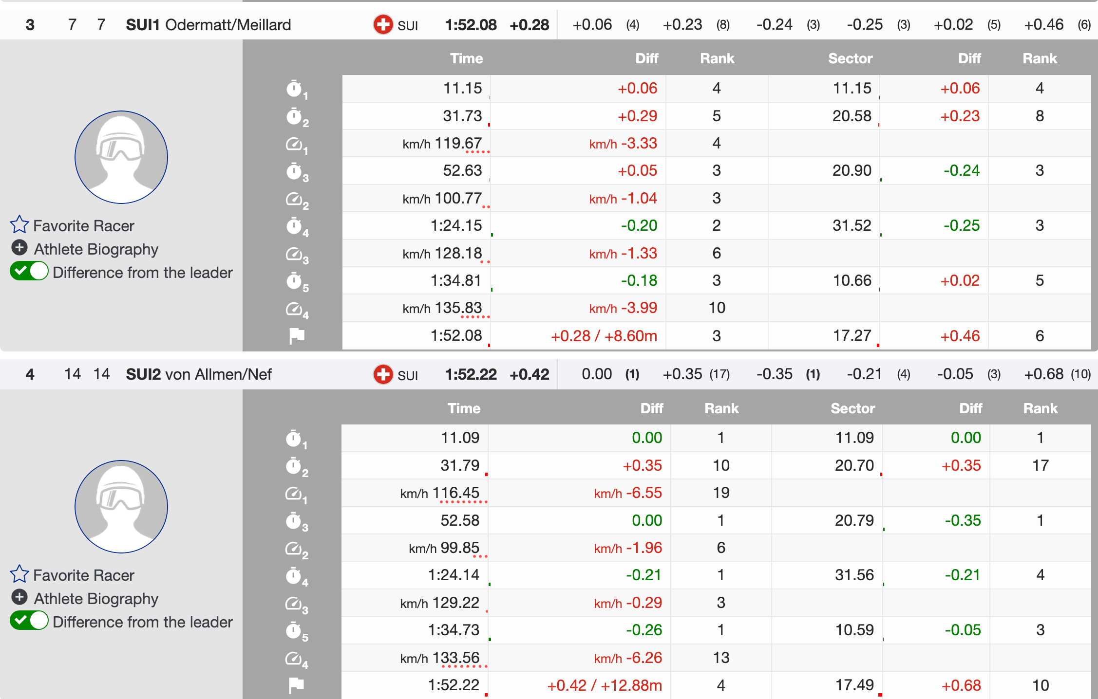 - 3rd: SUI1 🇨🇭Marco Odermatt (SUI) — +0.28