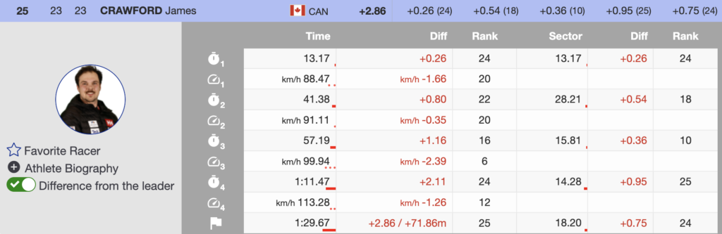 25th 🇨🇦 James Crawford (CAN, Bib 23, 1997, Head) — +2.86 (no points)