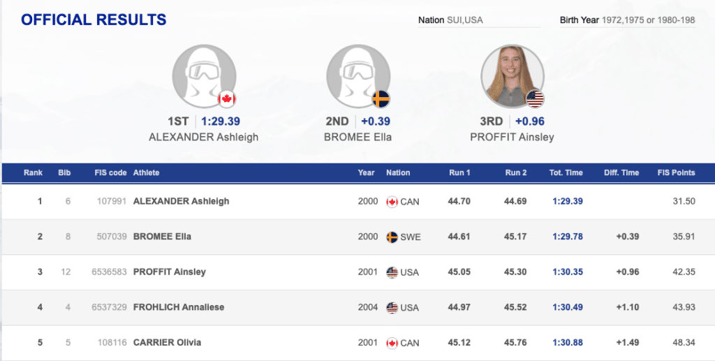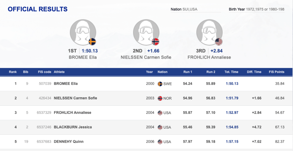 Initially, the schedule offered two slaloms, two giant slaloms, and a super-G for each gender. However, after fighting the elements, the women raced two slaloms and one giant slalom and the men raced one slalom and GS. Hopefully, the athletes could take advantage of the fantastic mountain when they couldn’t race.