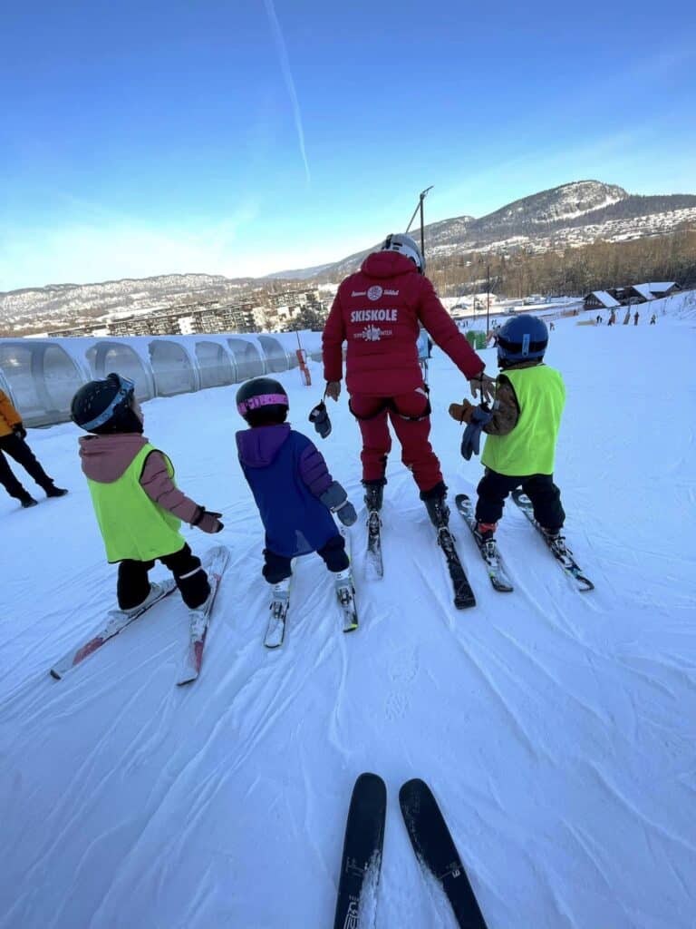 For decades, kindergarteners and school children have come to Kirkerudbakken during their free time to play on skis and boards, hang out, socialize, learn, practice and race. The ski area isn’t big, but it works magic. Two main runs head straight down the hillside, with a T-bar and a Poma lift in the middle. Minor extensions of skiable areas, a shorter Poma lift and a magic carpet lift have been added in recent years, squeezed in despite limited space. But it works.
