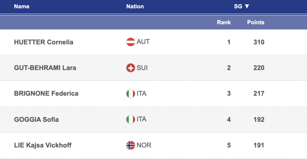 Cornelia Hütter is currently the highest ranked in World Cup super-G. She has finished inside the top-4 in all four World Cup super-G events this season, with one victory, two podiums and a 4th-place result. There is no denying that Hütter’s super-G is currently on fire, but with tight competition, she will still need to push hard to achieve a second 2024 victory.