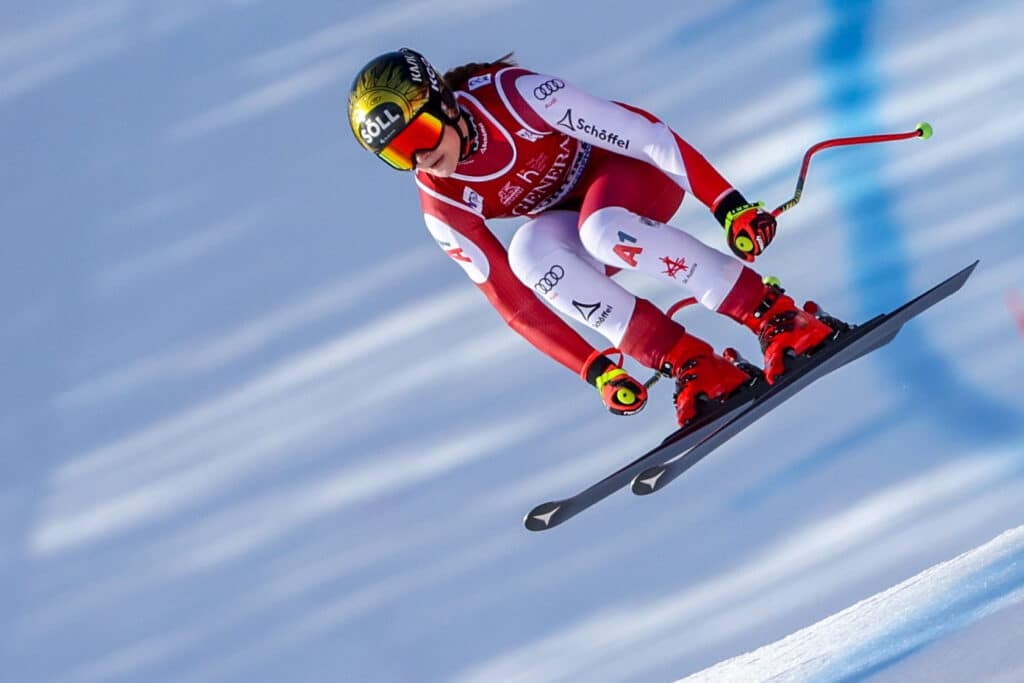 Stephanie Venier had a thrilling day, throwing down a victorious run on the Olympia Delle Tofane track. She ran the adjusted line that she was told would be best, attacked the course aggressively, and let the skis run on the gliding sections of the course. She finished over three-tenths in front of the 2nd-place finisher, Lara Gut-Behrami. This was the Austrian’s second win and 6th podium in downhill.