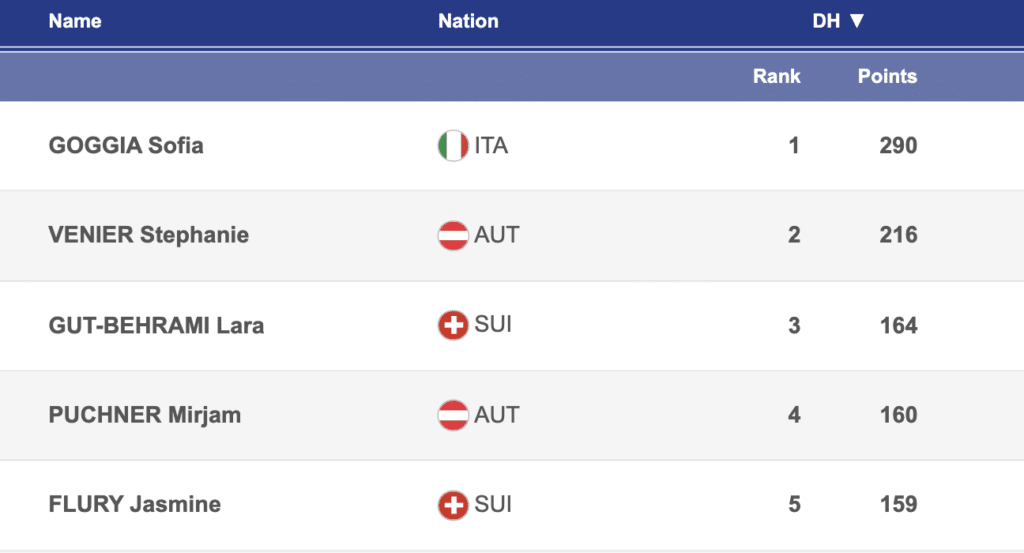 Top Five Ranked Downhill Women for the 2023-24 Season