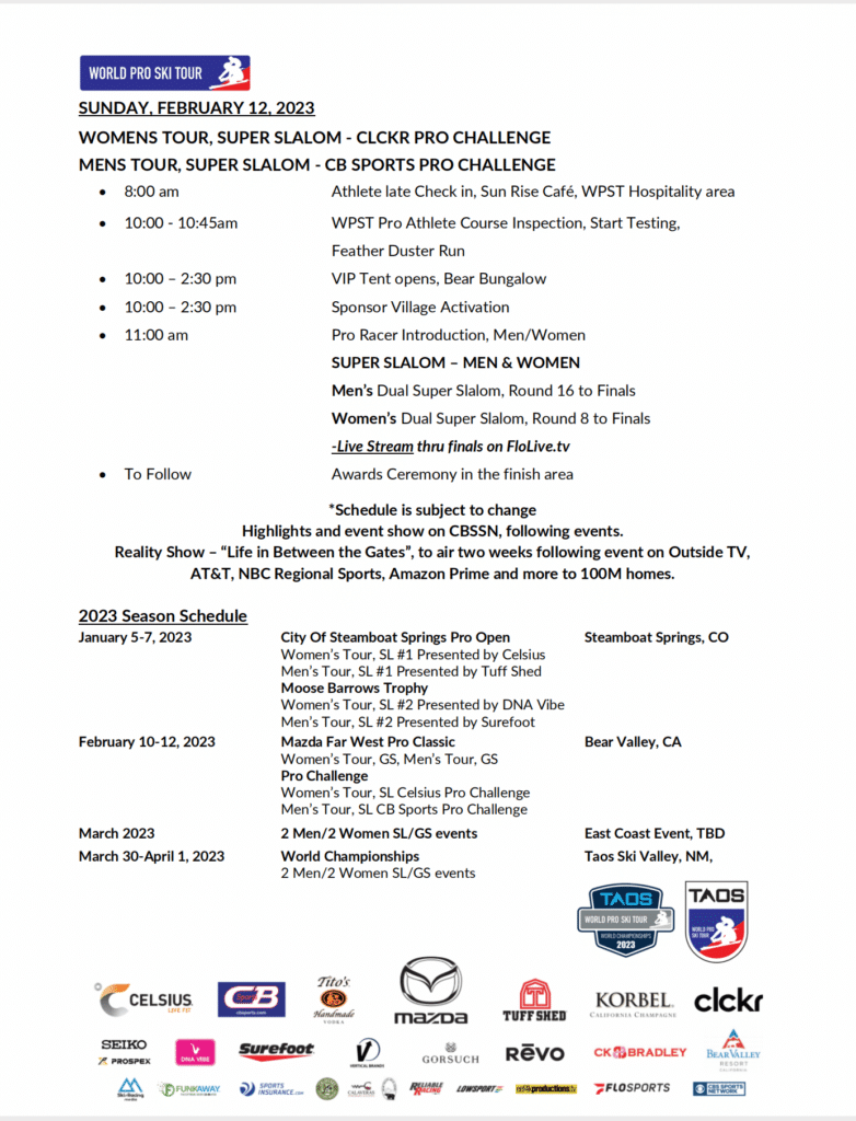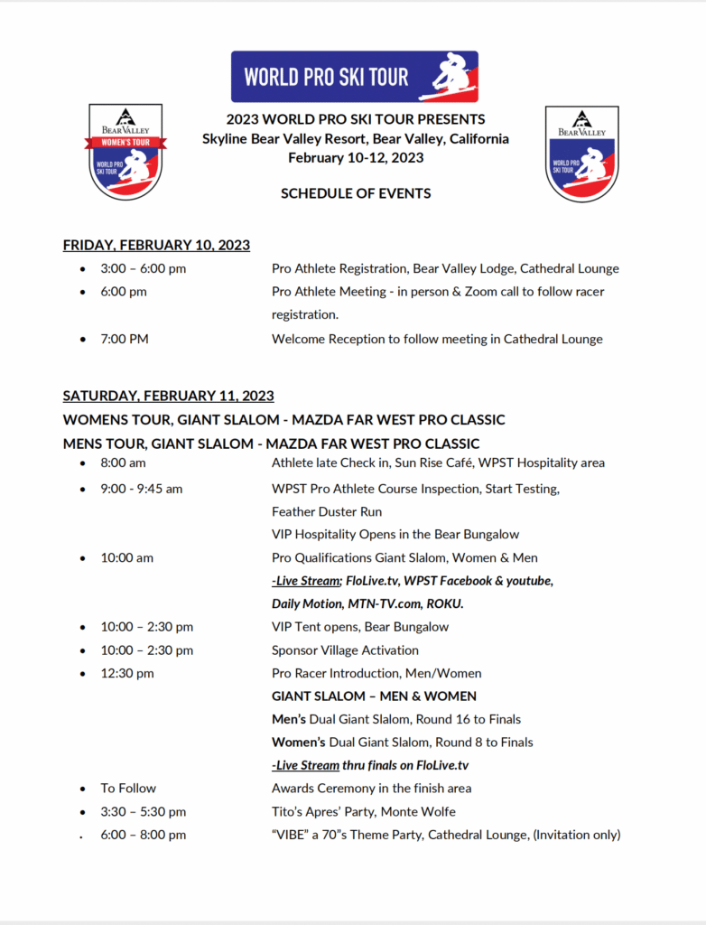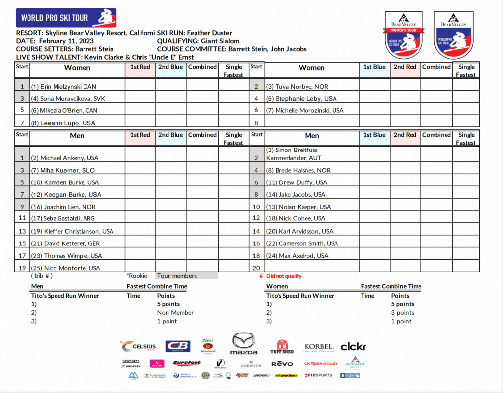Watch the men and women of the World Pro Ski Tour in Bear Valley Resort, California.