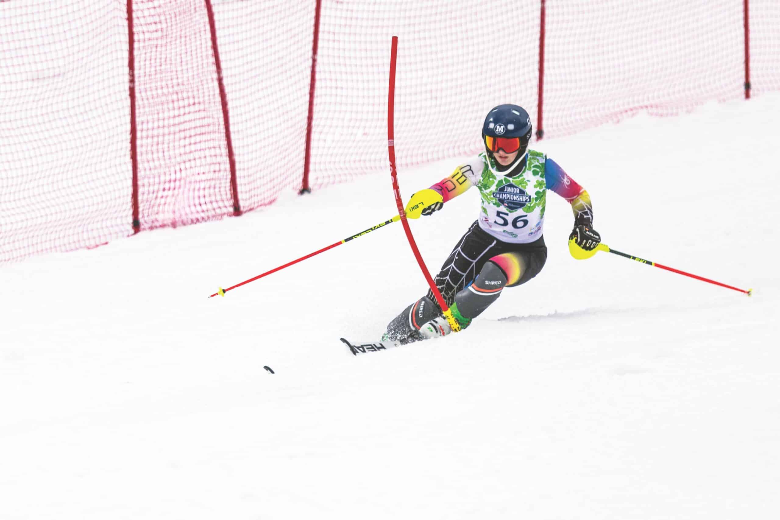 Looking for opportunities outside of Middlebury Ski Club to learn and grow my skills, I attended a holiday camp at Green Mountain Valley School (GMVS) before the start of my racing debut two years ago. When I arrived at the camp, I soon realized I had no idea what I was doing, and I wasn’t prepared with any of the right equipment for racing. When the camp director was discussing appropriate attire, someone asked if they should wear their speed suit. I leaned over and asked my friend, who was attending the camp with me, “What’s a speed suit?” Other racers had multiple pairs of skis, expensive boots, racing helmets and specialized equipment like slalom poles and gloves. I came with one pair of skis that were too short for me, my helmet was not for racing, my boots were too big, and I didn’t know the difference between slalom and GS skis and poles. I was a mess and was second-guessing my choice to attend. The coaches were great and so helpful. They told me I was going to need to get some race gear if I wanted to be able to actually compete in races. As we began shopping around for gear, we soon realized that we were getting into a very expensive sport.