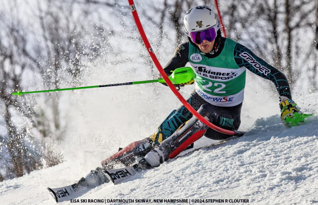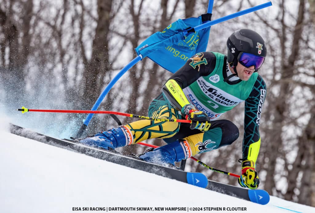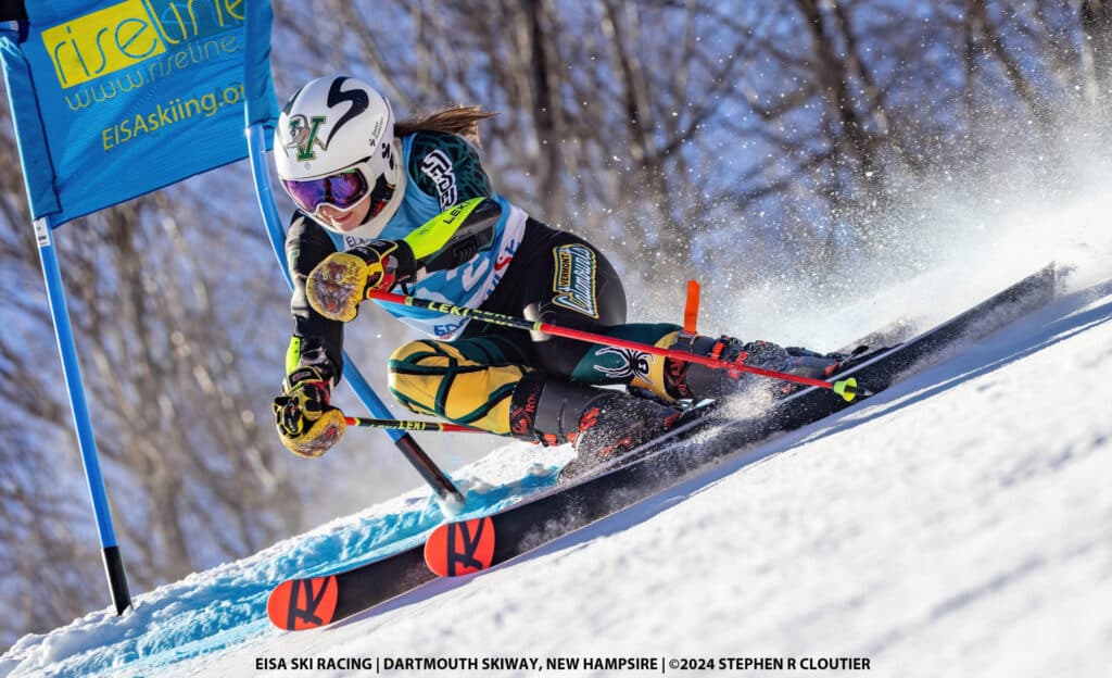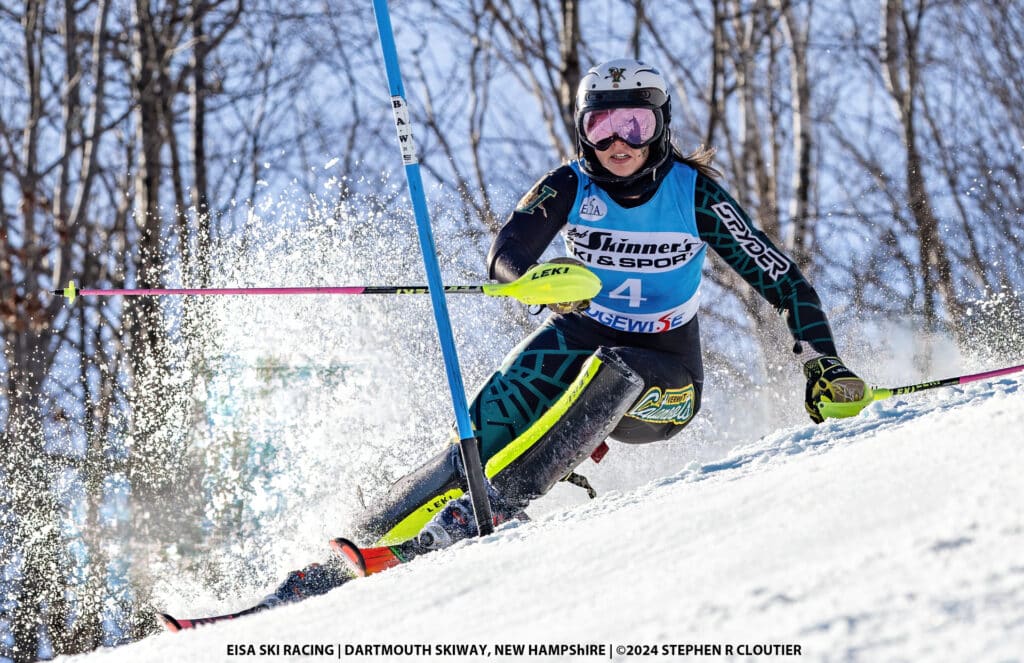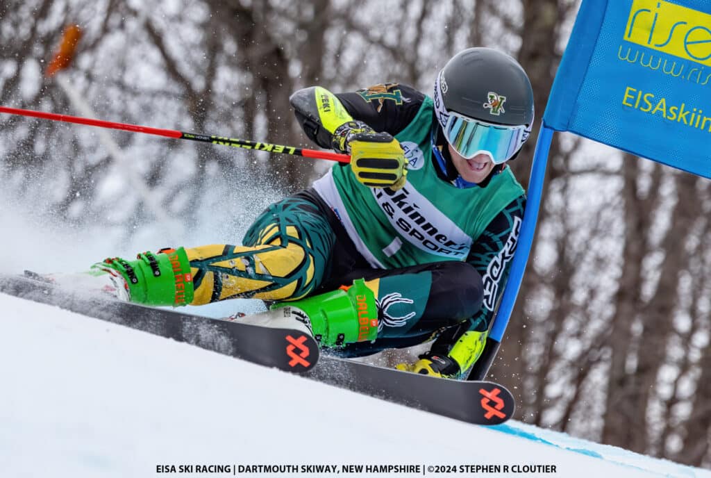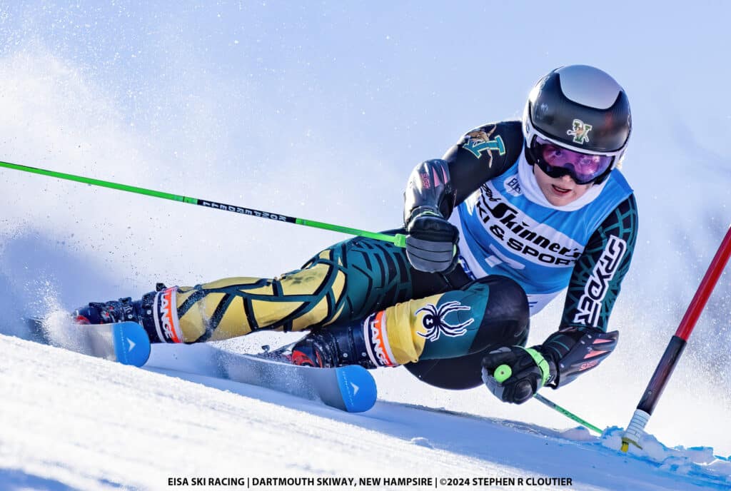 Lyme, NH – EISA Alpine ski racing returned to the Dartmouth Skiway this past weekend, starting Thursday with the makeup University of Vermont Giant Slalom race. The hill was bathed in sunshine as warm weather hit New Hampshire. Despite the temps, the snow was superb, and the field of racers charged top to bottom.