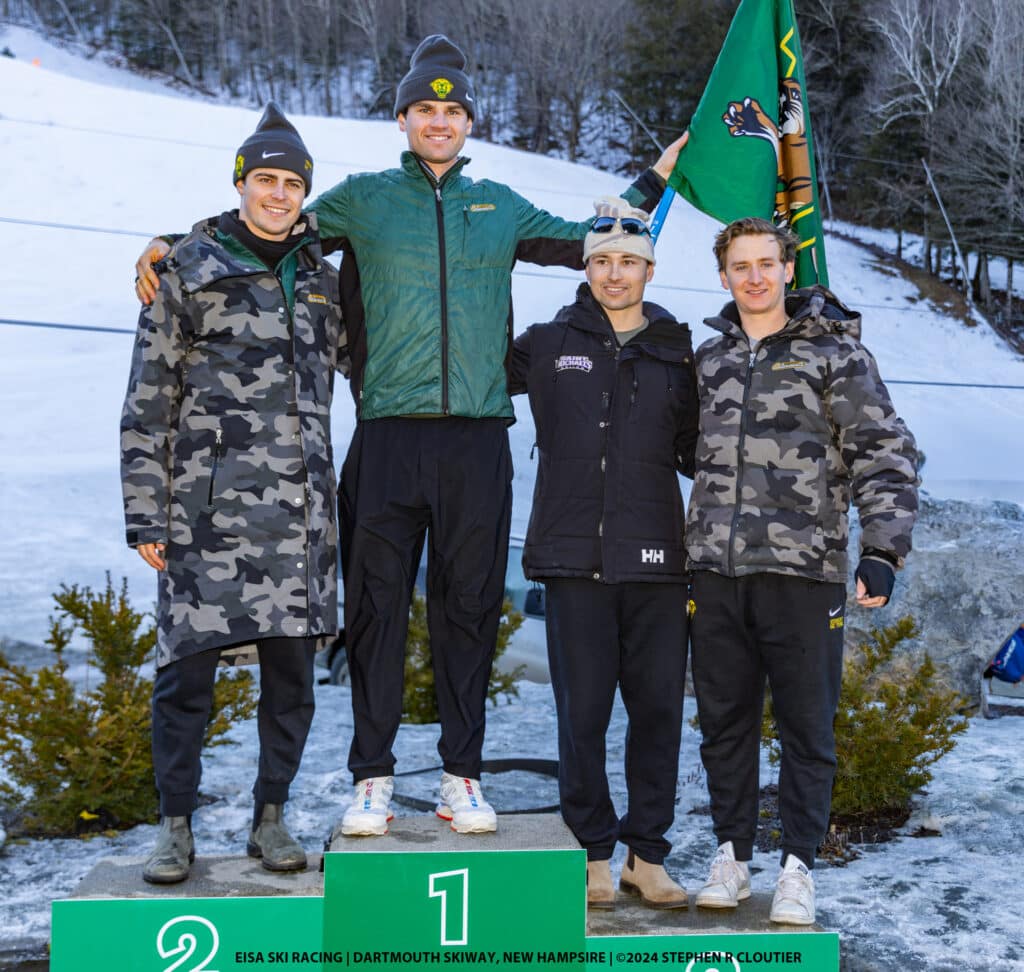 As shadows crept onto the track, the men were starting their second run. The pressing question was whether anyone could stop UVM’s dominance. The answer was a resounding no as McCormack, Alexander, and Holscher all landed on the podium. A surprise did come from Simen Strand (Saint Michael’s), whose solid second run moved him up two spots to tie with Holscher for third place. Hunter Brayton (UNH) completed the top 5.