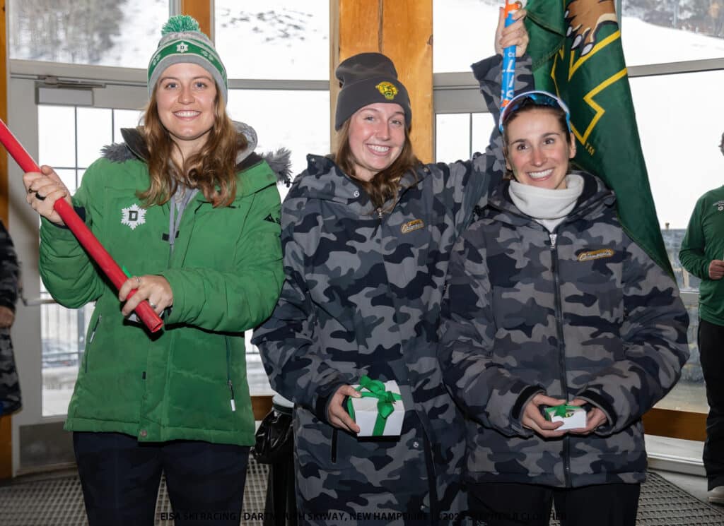 On the second run, two amazing runs from the ‘home team,’ Dartmouth, saw Holm and Gwen Wattenmaker move up into the top group. Wattenmaker finished inside the top 10 for the first time this season as she skied to fifth place. Holm attacked the flatter section with aggression to land her first podium in two seasons. For Holm, it was the culmination of hard work made even sweeter by the venue, “It feels great having everything come together on race day, and all the better that I was able to execute on my home hill with friends and family around.”