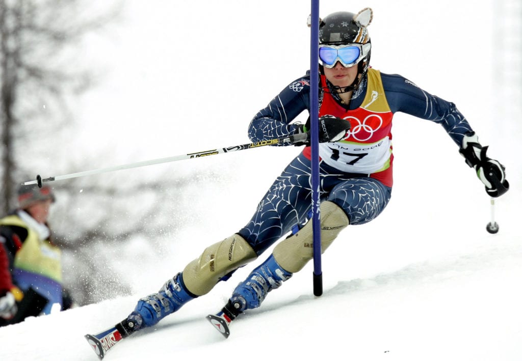 Stiegler’s iconic tiger ears came to the world’s attention at the 2006 Olympics in Sestriere. The IOC had prohibited her from wearing the ears, ruling it was a commercial marking. U.S. Ski Team and U.S. Olympic Committee officials carried the torch, battling the IOC for several days. In the end, the IOC relented and the tiger ears – with significant resultant media attention – adorned her helmet for the slalom.