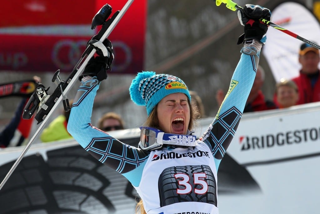 Stiegler charged the second run, bursting into the lead as she pumped her fist and screamed as loud as she could. Standing in the leader’s box, she watched the superstars of slalom come down – Poutianen, Schild, Hoefl-Riesch. None of them could crack into the lead. Then, in a North American show of force, Canada’s Erin Mielzynski – who had never had a top-10 – came down like lightning, eclipsing Stiegler by a mere five hundredths to take the win.