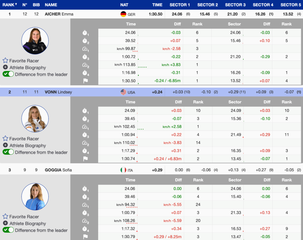 Aicher skied with a level of composure and control well beyond her years, absorbing the increasingly bumpy conditions and carrying speed through the lower sections, where races are often decided. Her ability to manage risk while continuing to attack underscored the confidence and composure that have become hallmarks of her skiing.
