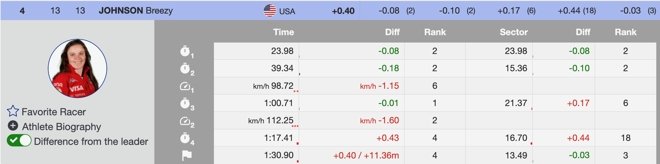 “I feel good,” Johnson said. “I’ve been struggling a lot the last few days, so just getting out of the start today and yesterday was a pretty big victory for me. My 99th start was probably the hardest of my entire career, and it’s getting better in the triple digits, and hopefully it continues to do so.”- Breezy Johnson