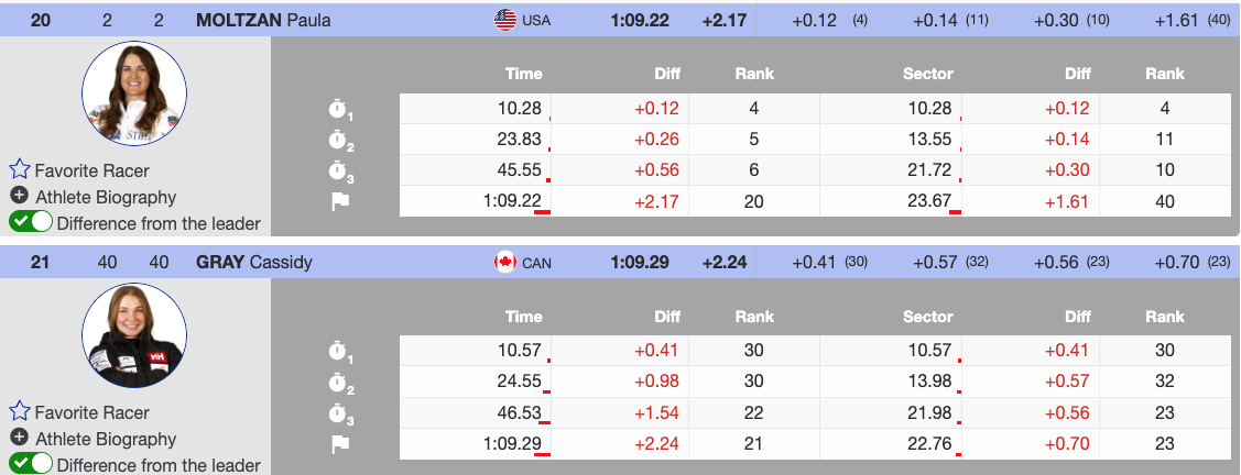 - Bib 40 — Cassidy Gray (CAN), 21st (+2.24)