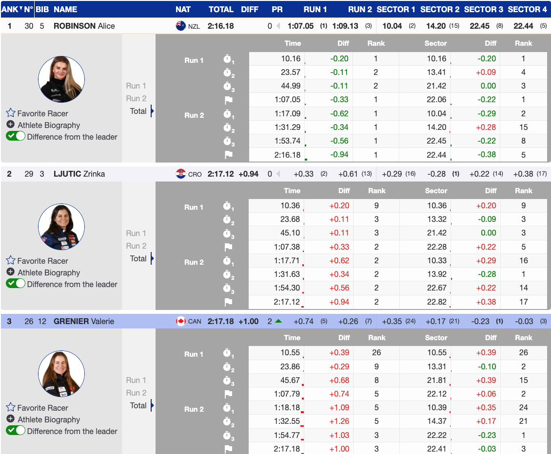 - Nina Astner (AUT) also moved up 8, finishing 18th.