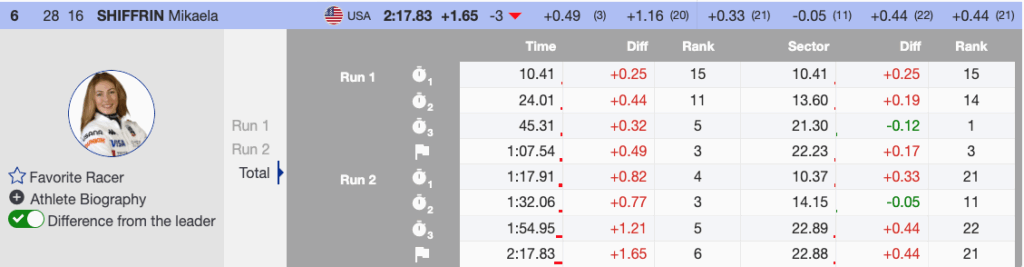 “I’m back in the top 15, and that’s really exciting. A few races ago I was fighting just to make the second run. Now I’m building, fighting for top fives, and hopefully soon podiums.” — Mikaela Shiffrin