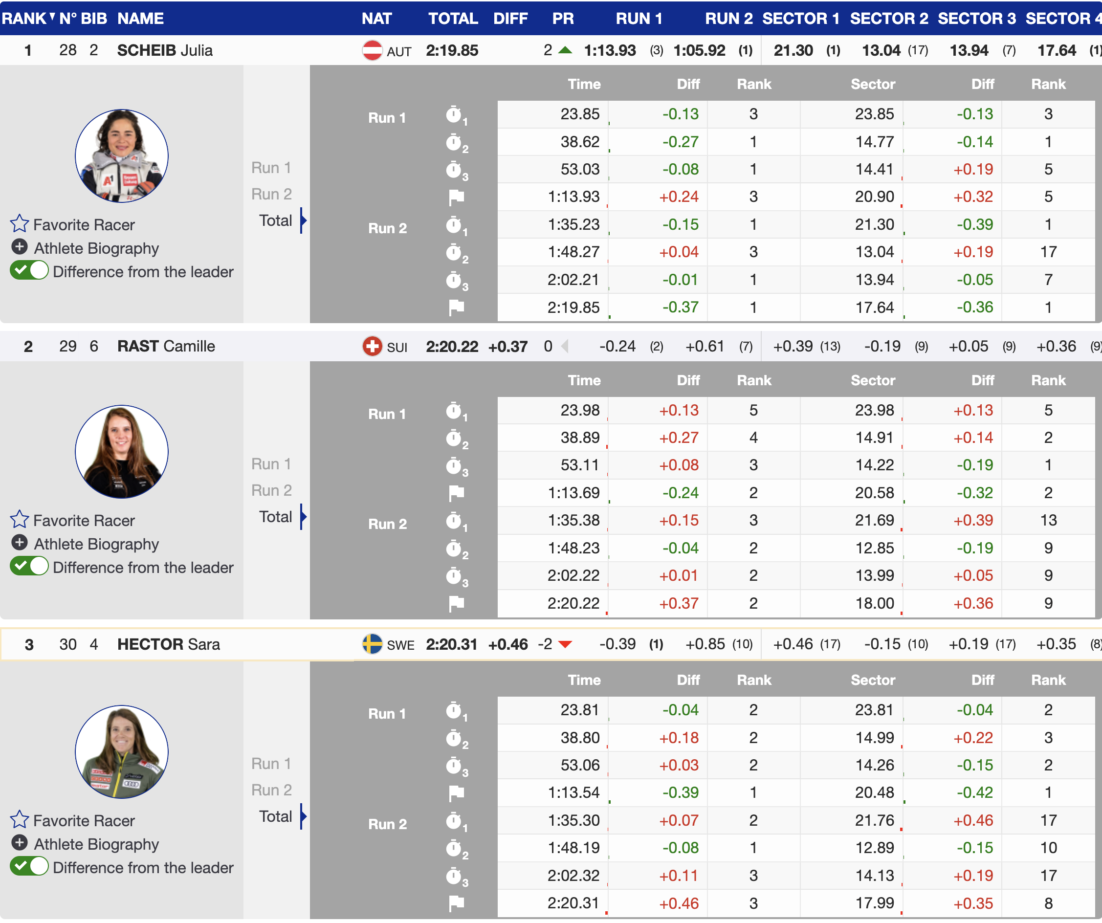 - 2nd — 🇨🇭 Camille Rast (SUI) — YOB 1999 — +0.37 — HEAD