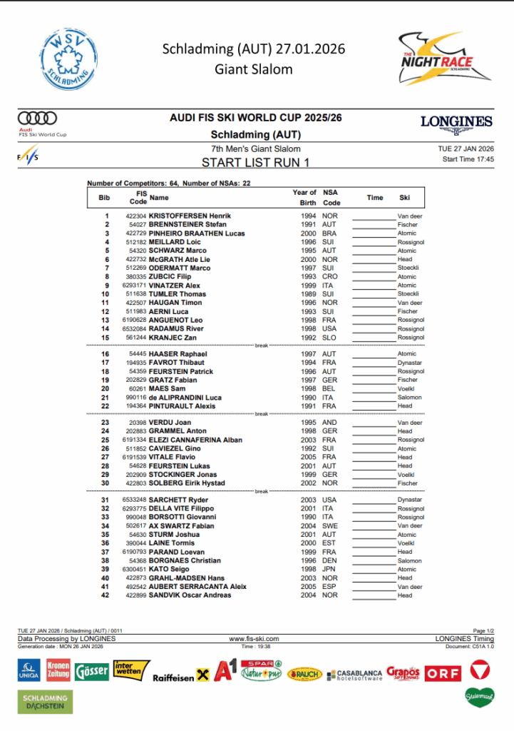 - 4th — 🇧🇷 Lucas Pinheiro Braathen (BRA) — YOB 2000 — –133 — Atomic, Oakley