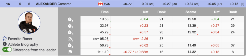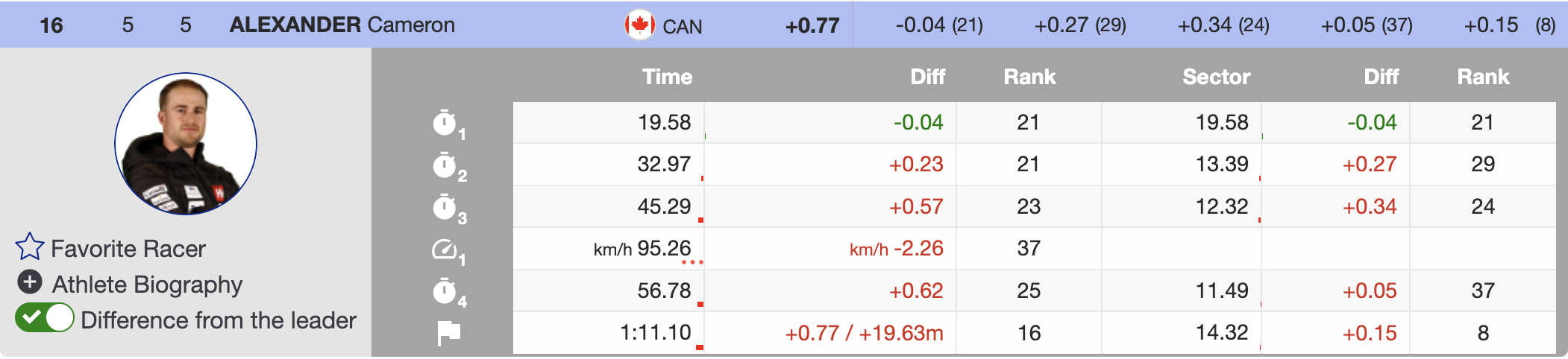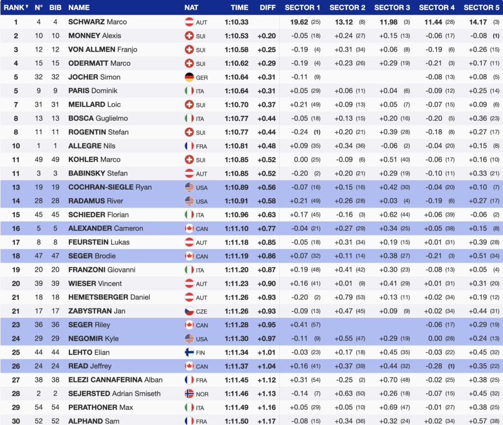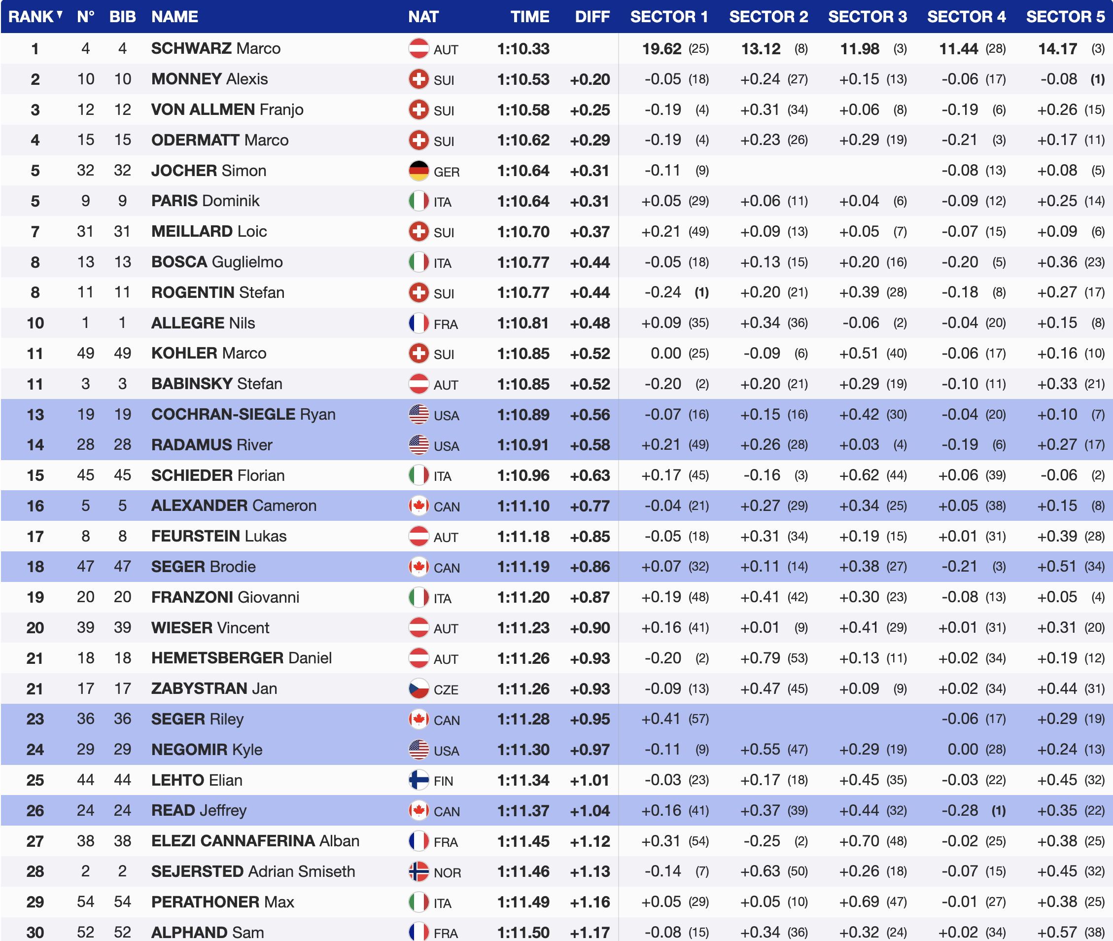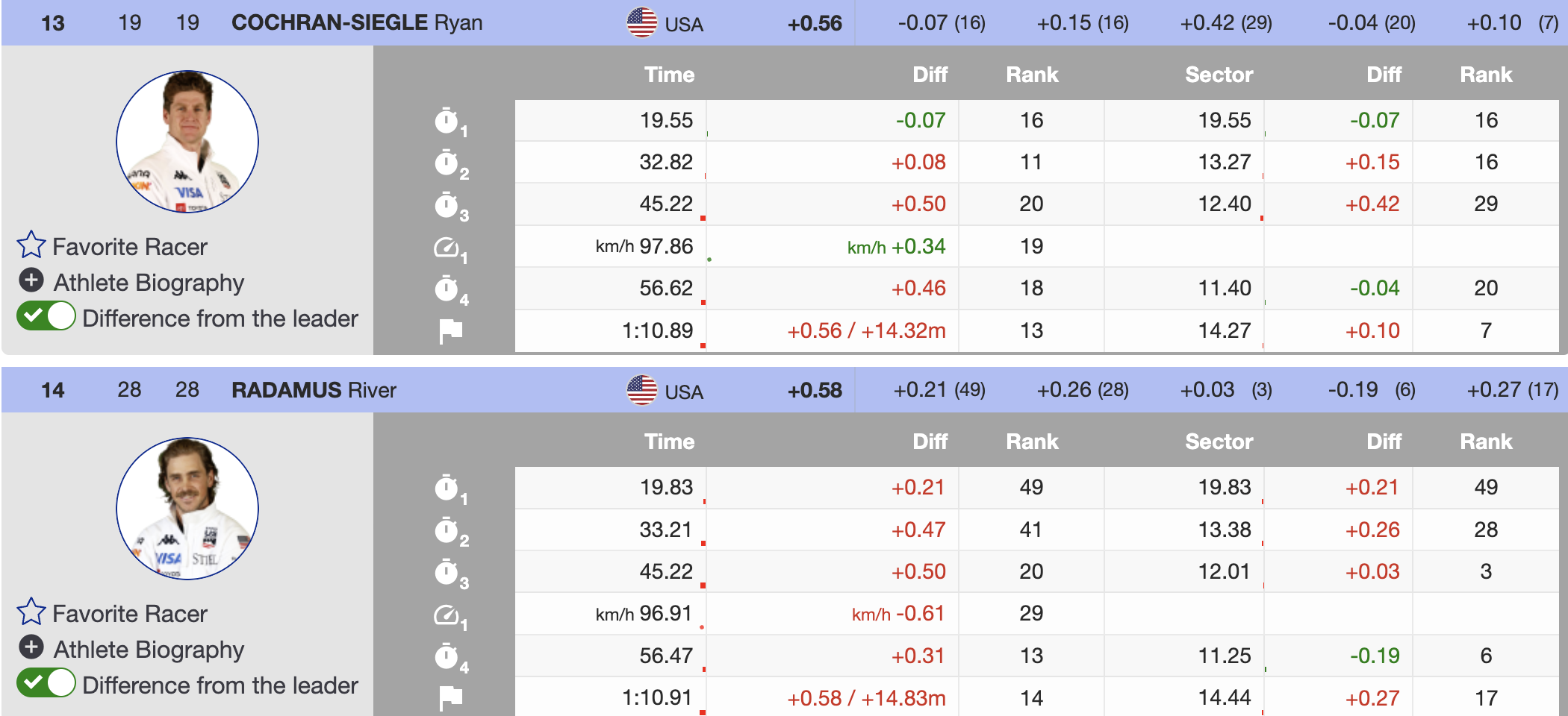 - Ryan Cochran-Siegle (1992) — 13th, +0.56 — HEAD