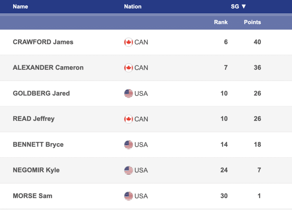 North Americans with 2024 super-G World Cup points