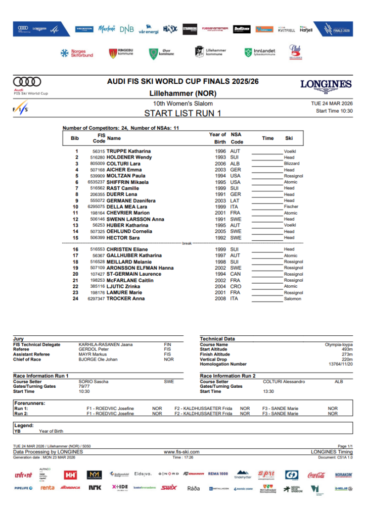 The final women’s slalom of the 2025–26 World Cup season arrives in Lillehammer, decided but with the overall crystal globe still in play. The race could mathematically decide the overall title; it will certainly shape whether the battle carries into the final day or ends here.