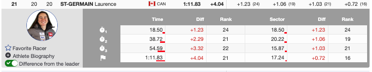 - 21st 🇨🇦 Laurence St Germain (CAN), Bib 20 — +4.04