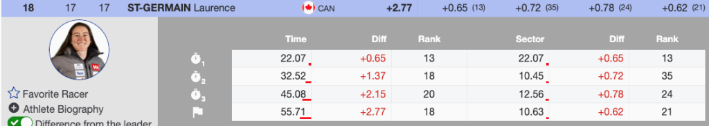 - Nicole Good (SUI) — Bib 36, 26th, +3.58