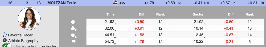 - Nicole Good (SUI) — Bib 36, 26th, +3.58
