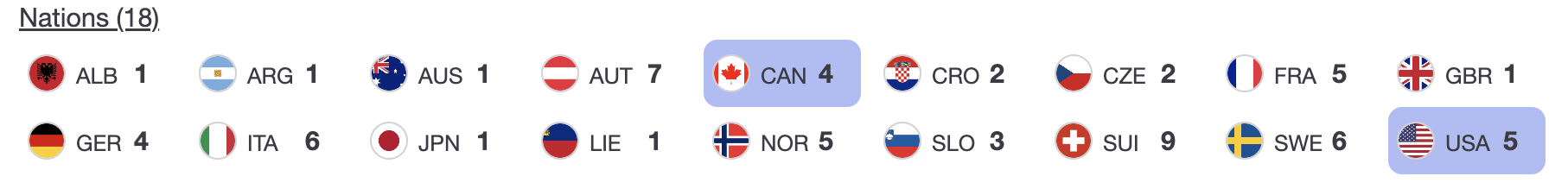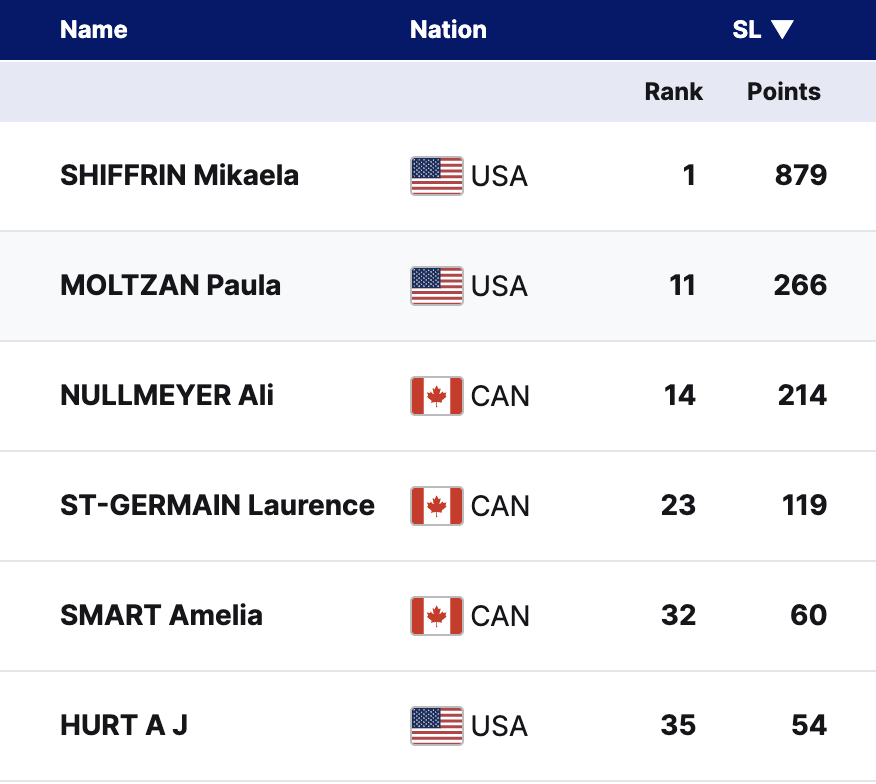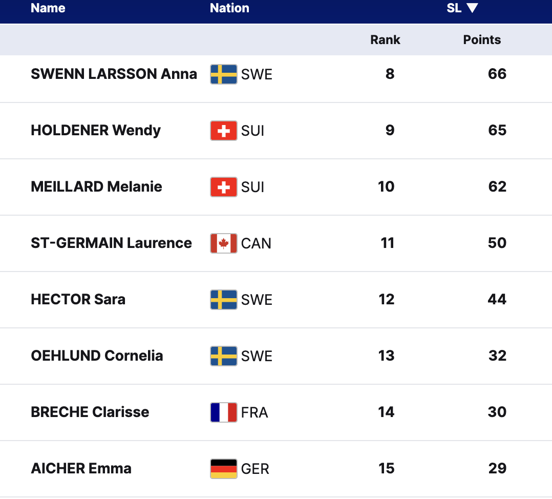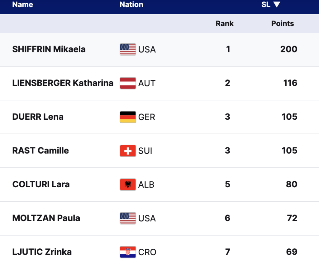 This distribution confirms the competitive strength of these nations in women’s slalom.