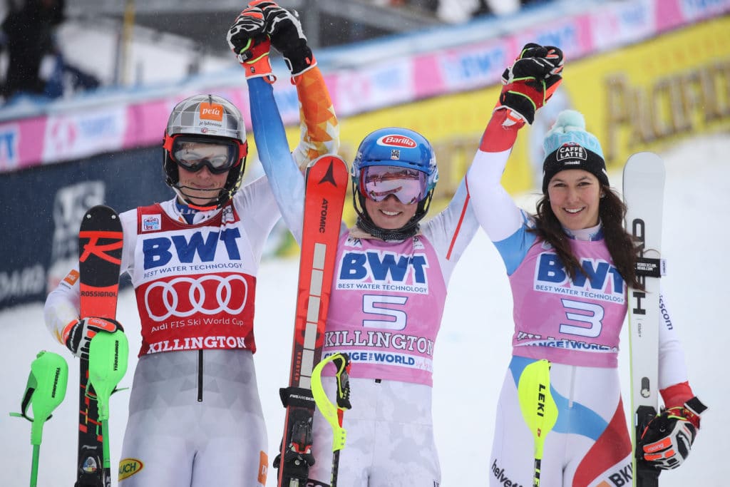 Wendy Holdener of Switzerland finished third, .83 behind Shiffrin.