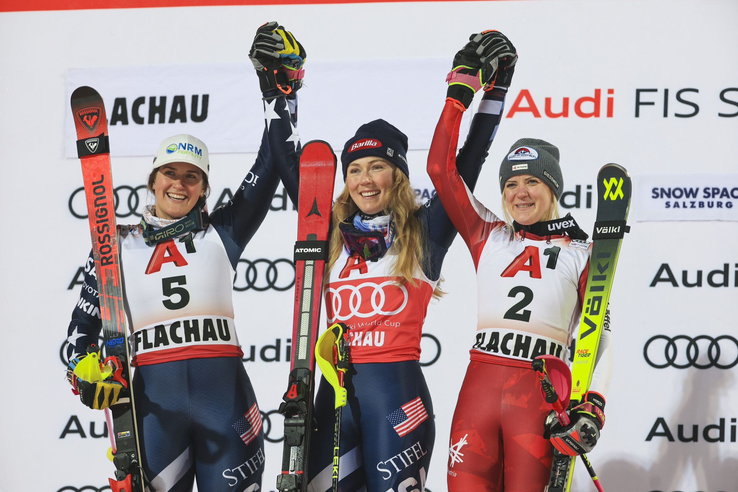 “It’s amazing to share this with Paula,” Shiffrin said. “Podiums with teammates are the best thing in the world.”