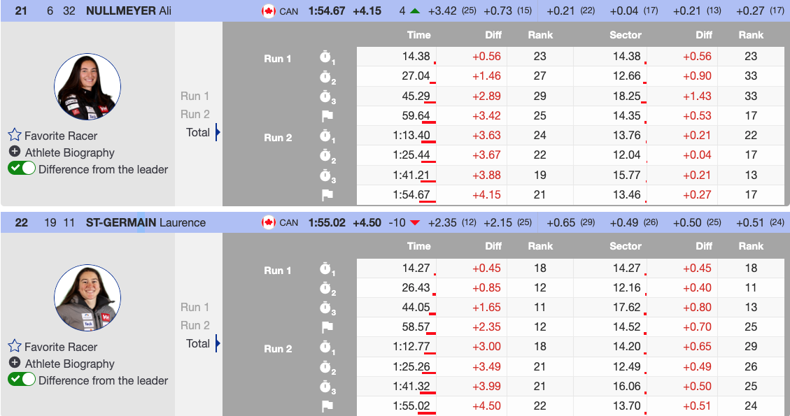 Fastest second run; moved up 8 positions - 13th — 🇺🇸 USA Nina O’Brien — 1997 — — — +2.33