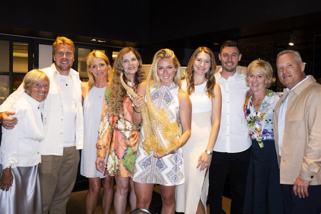 Shiffrin says, “It was the whole team, my family and the majority of the most meaningful people in our lives, my mom’s life, and my career over the last 20 or so years. So many people were able to make it. That evening was really, really, really fun and was a total surprise.”