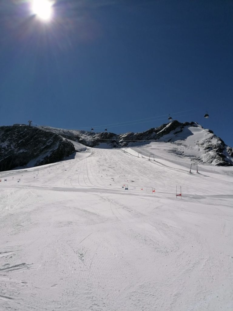 It is opening day on the Rettenbach Glacier in Sölden. Winter is returning to the European Alps and the Austrian glaciers are starting to offer training. As of September 23rd, skiing is available in Sölden. Although it is currently limited to what you see in the photos, with more snow in the forecast, expect additional terrain to be available shortly.