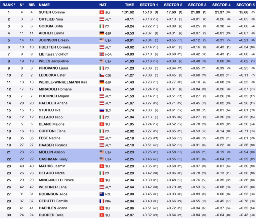 - 5th — Bib 14 🇺🇸 Breezy Johnson (USA, 1996, Rowmark Ski Academy, Atomic) — +0.61