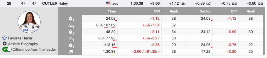 - 28th — Bib 47 🇺🇸 Haley Cutler (USA) — +3.66
