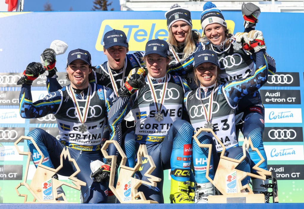 “It has been a long time since I’ve done the team event, so I’m super happy to race this” said Swedish silver medalist Sara Hector. “It feels a little bit different to be with the guys – it’s not so often, so it was fun to be with the team.”