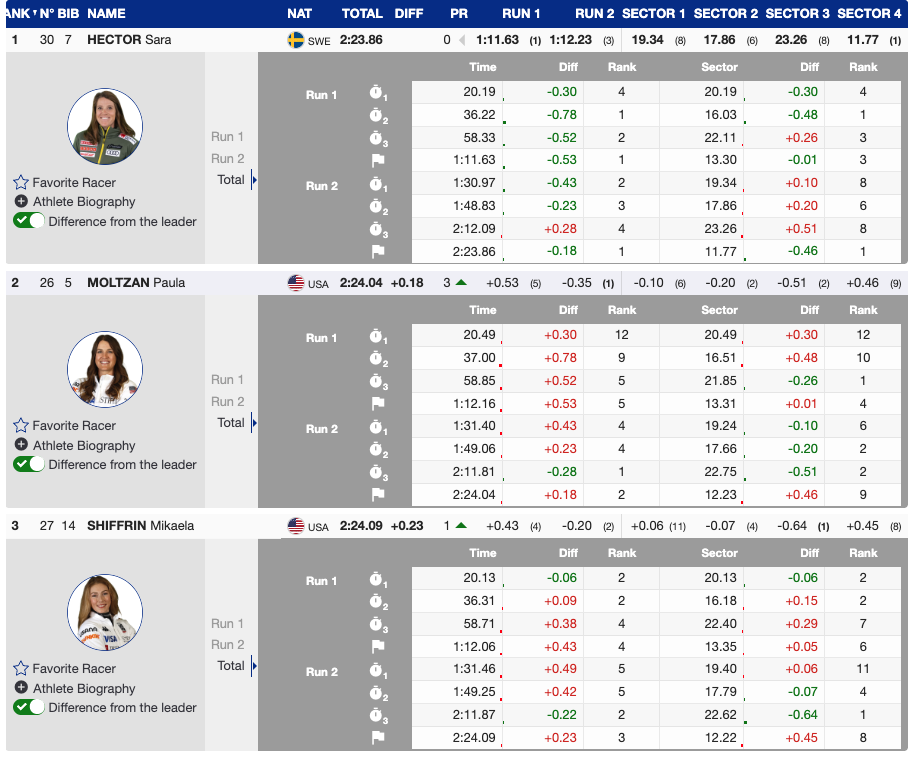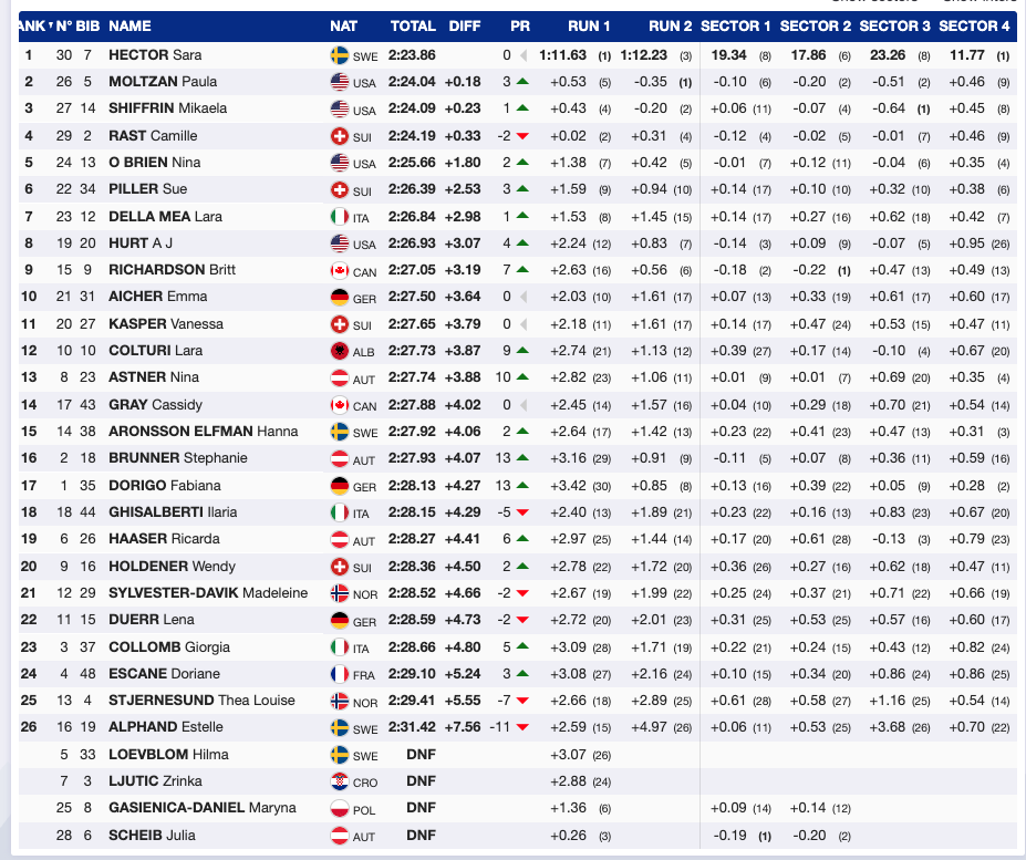 - 3rd — 🇺🇸 Mikaela Shiffrin (USA) — YOB 1995- +.23