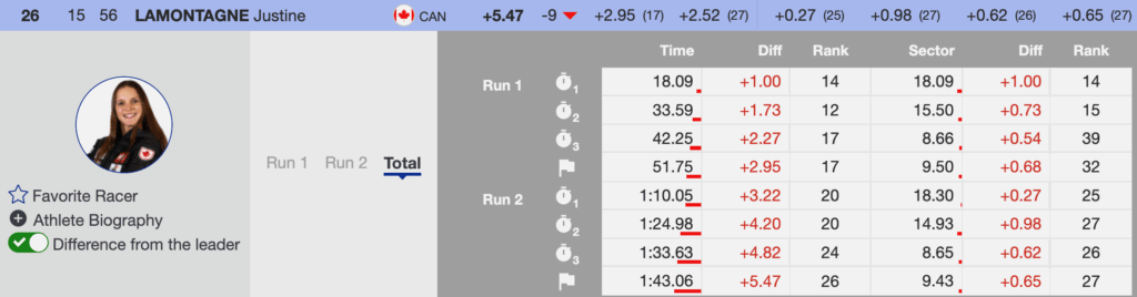 On the Canadian side, Justine Lamontagne secured her first World Cup slalom points, finishing 26th. While her second run was more conservative, it was a confident and controlled effort that should provide momentum moving forward. A natural giant slalom skier, Lamontagne continues to show promise in slalom, and this result may encourage Canada to give her more starts in the discipline going forward.