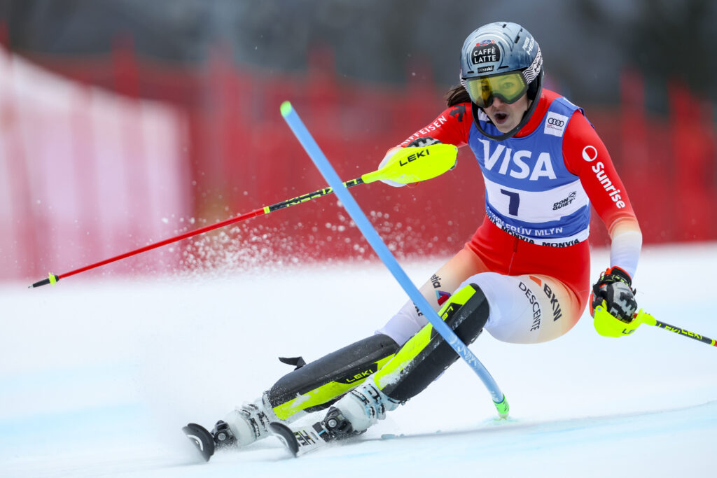 The U.S. team continued its strong showing with three skiers inside the top 10 after the first run. Paula Moltzan delivered a solid, composed performance, skiing a bit more conservatively than usual in the upper section before gaining confidence and momentum through the middle and lower parts of the course. A near miss in the bottom cost her some time, but she stayed on her feet to post a strong result, sitting tied for fourth with Camille Rast at +1.66. Moltzan remains firmly in the mix and will be looking to attack in the second run to make up ground.