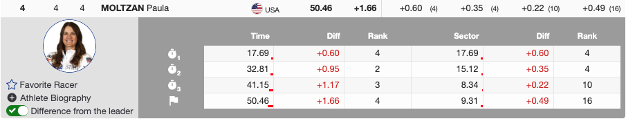 - Bib 11 — 🇺🇸 Paula Moltzan (USA) — 1994 — +1.66