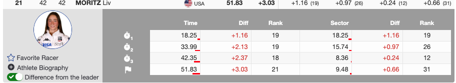 - 21st — Bib 42 — 🇺🇸 Liv Moritz (USA) — 2004 — +3.03