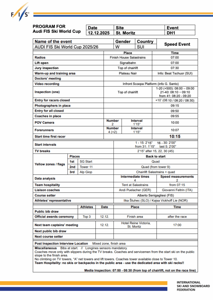 Daily Program Women’s Downhill